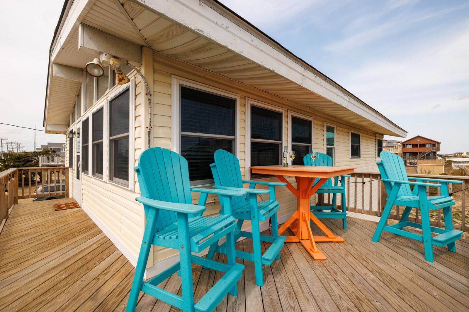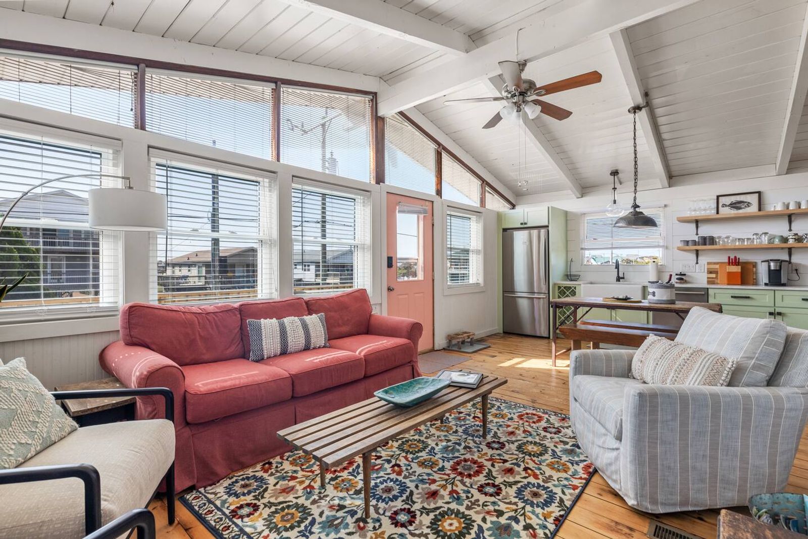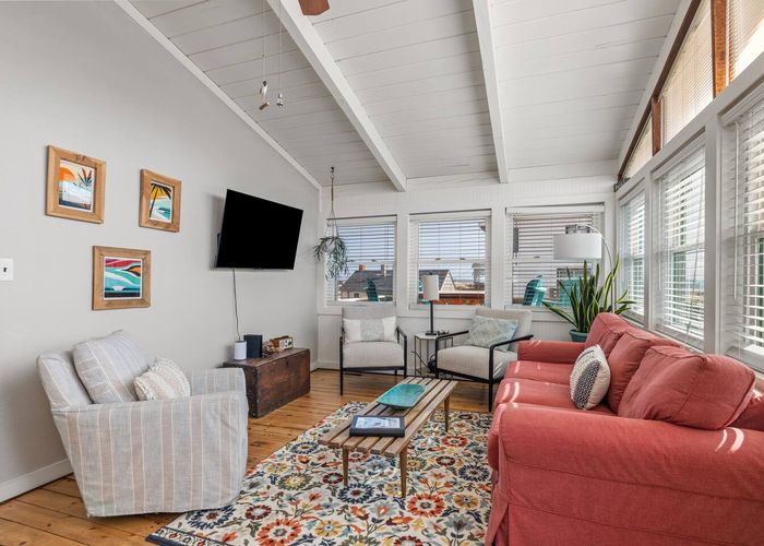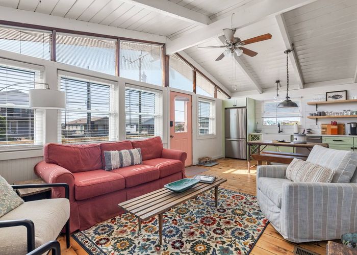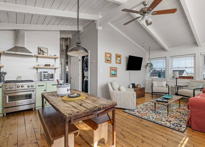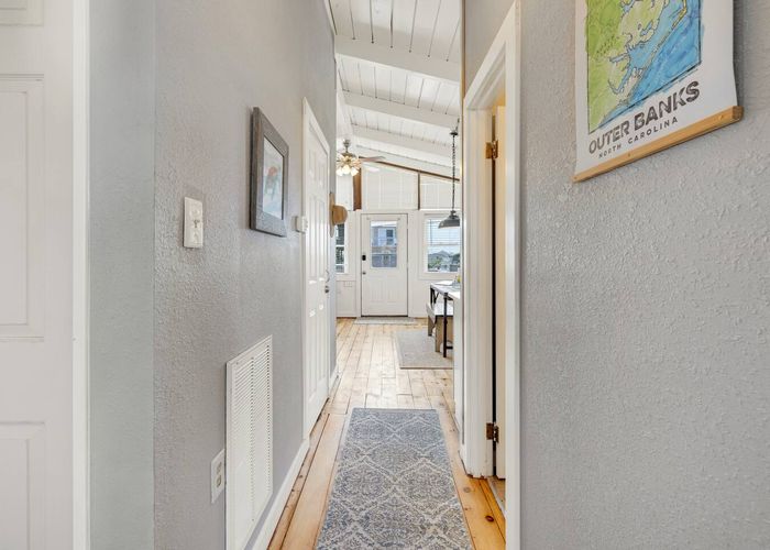 Tucked along beloved Helga Street in Kill Devil Hills, Born to Sun blends the soul of a vintage beach box—beamed ceilings, pine floors—with modern comforts made for easy coastal living. The open, single-level layout keeps everyone connected, while nooks for reading and morning coffee make it feel unhurried and personal. Cook together in the brand-new chef kitchen, stroll to the beach (one house from the crosswalk), then end the day with salty hair and happy hearts.