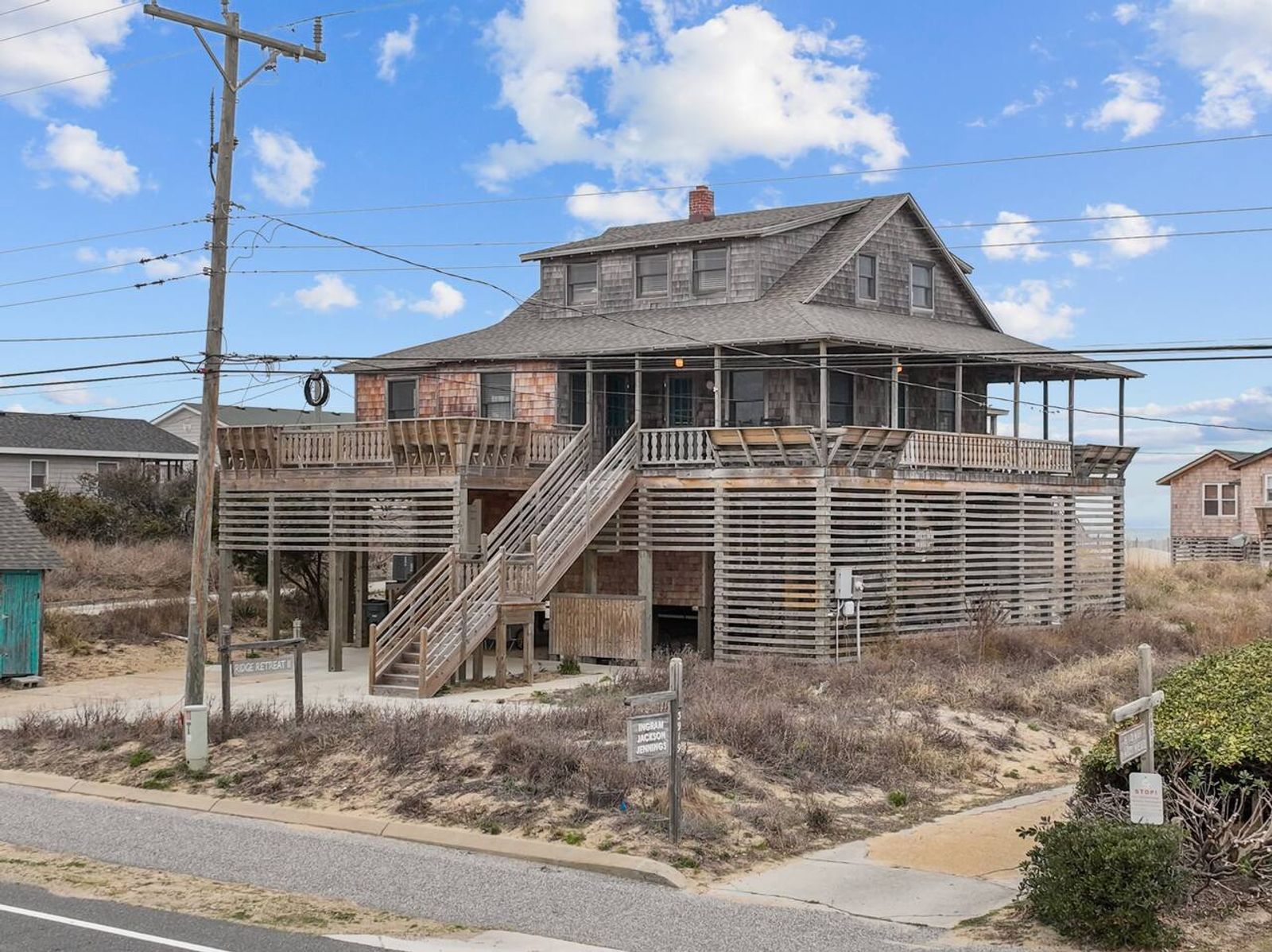 Ridge Retreat II is a cherished 1938 Nags Head cottage, just 150 feet from the beach with semi-private access. Overlooking Jockey’s Ridge, this historic home blends timeless charm with modern comforts. Relax on spacious covered porches, take in ocean views, and enjoy being near local shops, dining, and live entertainment. A true family heirloom, this home invites you to create unforgettable OBX memories. Ocean Side with Ocean Views!