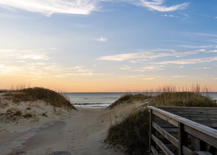 This home holds a special place in Outer Banks history, with one of its owners having worked alongside Carolista Fletcher Baum to protect and preserve Jockey’s Ridge from development. Thanks to their efforts, this towering natural wonder—the largest active sand dune on the East Coast—remains a playground for adventure, exploration, and breathtaking sunsets. Today, Ridge Retreat II overlooks this iconic landscape, offering a truly unique setting where history and nature meet.