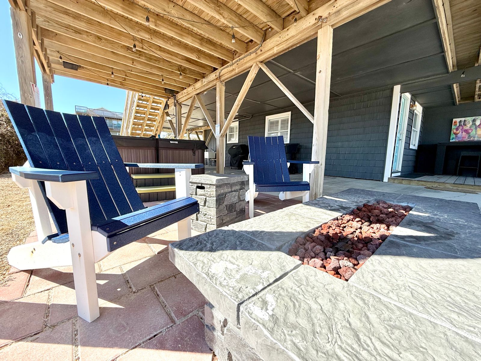 Outside is where the memories are made. Soak in the hot tub under the stars, rinse off in the private hot/cold outdoor shower, grill dinner on the propane gas grill, and gather beneath the string lights at the tiki bar. Add cornhole, outdoor seating, easy self check-in, and a responsive local team ready with dining tips and beach updates—and you’ve got the perfect setup for a laid-back, hook-wine-and-sinker Outer Banks getaway.