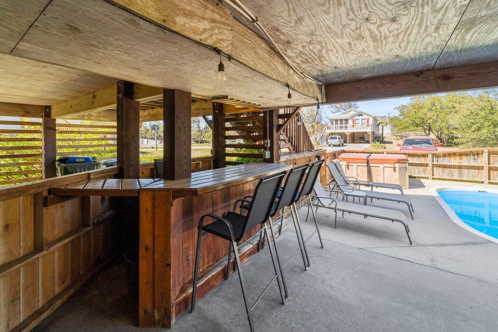 -Inviting outdoor area with a POOL, HOT TUB, tiki bar, outdoor shower, and outdoor bathroom.