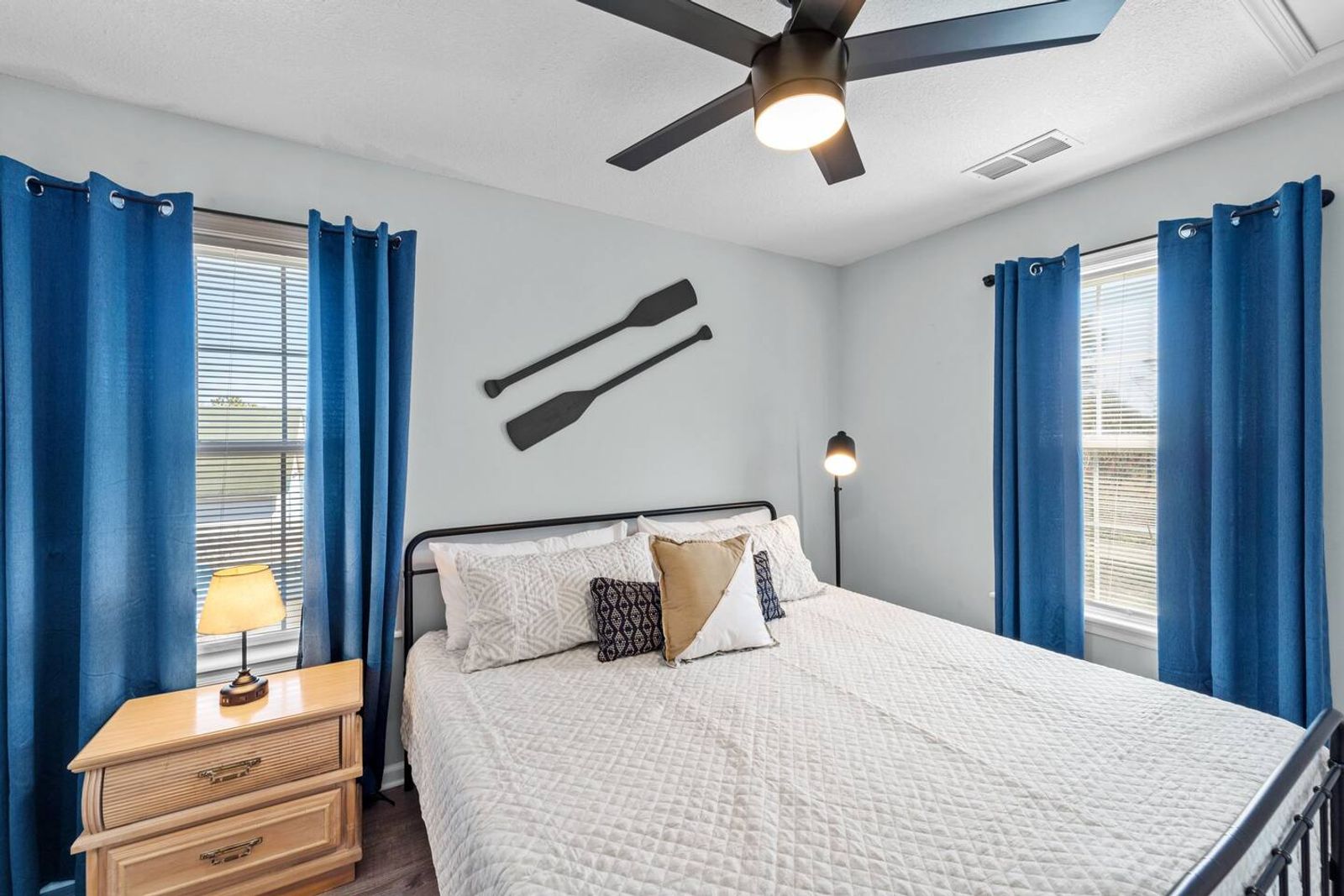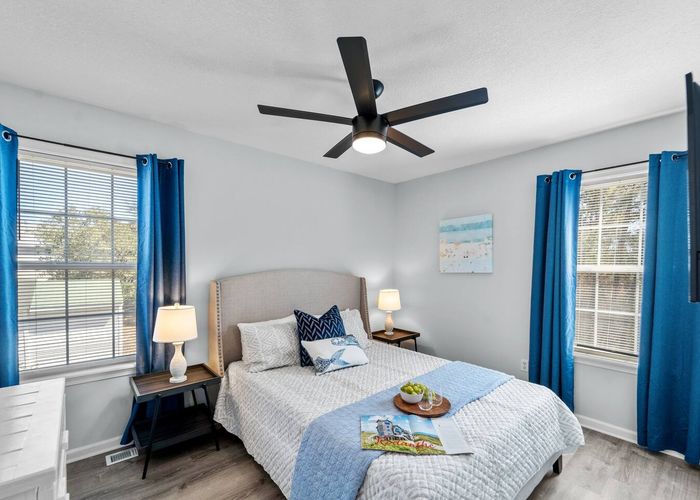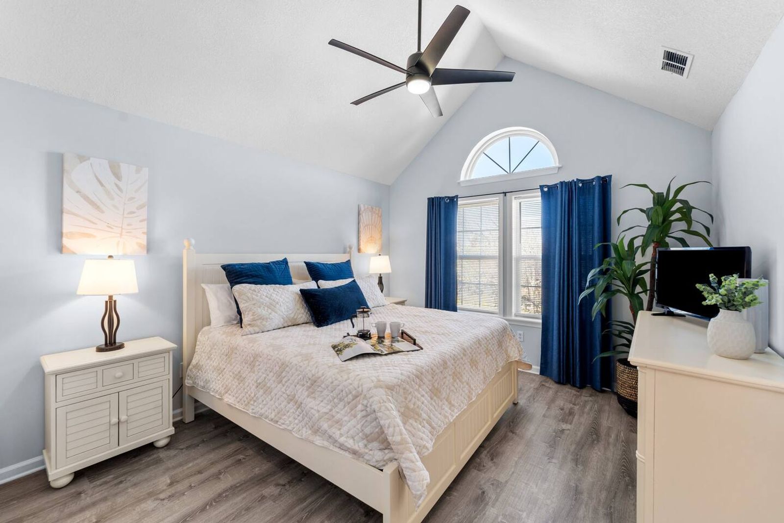 This home was located in a quiet neighborhood near a cudesac. The level of cleanliness was outstanding! The two decks and the enclosed pool area were wonderful. Although the walk to the beach is doable, we ended up renting a golf cart to get to and from the beach. There is a neighborhood ice cream shop that was nice to visit. Grocery shopping is convenient with many stores close and there is a Target nearby, too. We used Instacart for our food delivery.