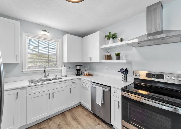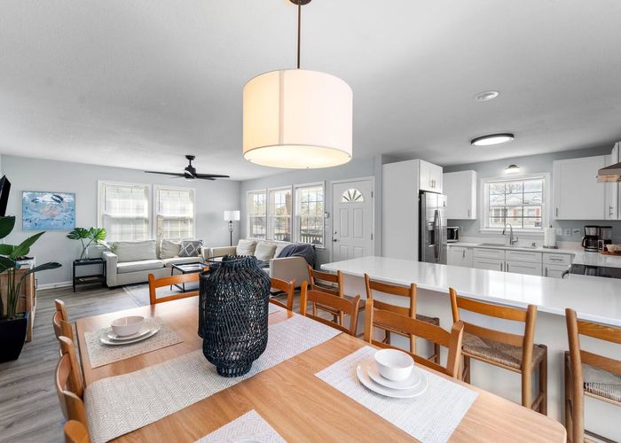 -Newly renovated kitchen with open concept layout to the dining area and living room.