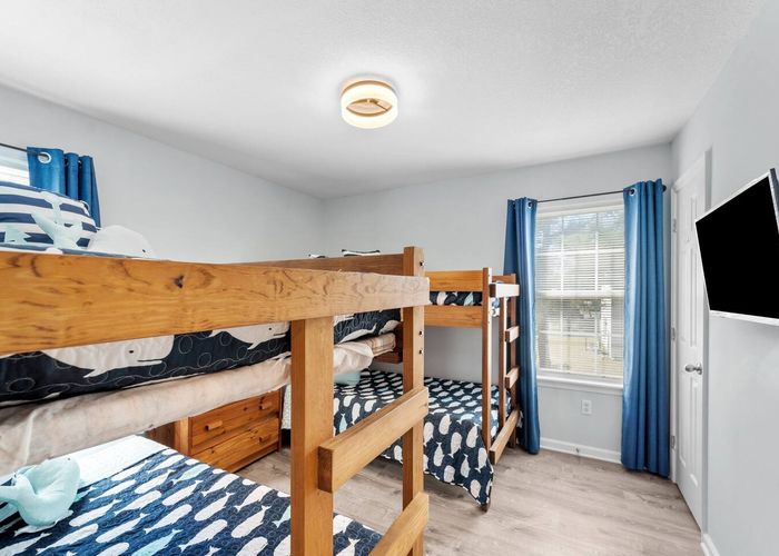 -4 bedrooms (2 King, 1 Queen, and 1 bunk room with 2 sets of twin bunks).