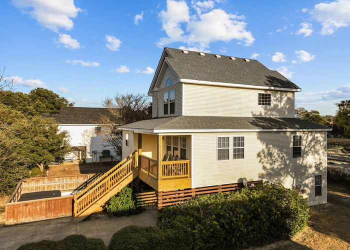 Discover JB by the Sea – your charming Nags Head cottage on a quiet cul-de-sac, just .2 miles or 5-minute walk to the beach. After twinkle-light markets and small-town parades, warm up in the hot tub, cuddle up on our front porch, or toast at the tiki bar.