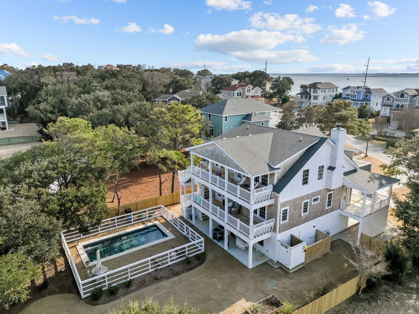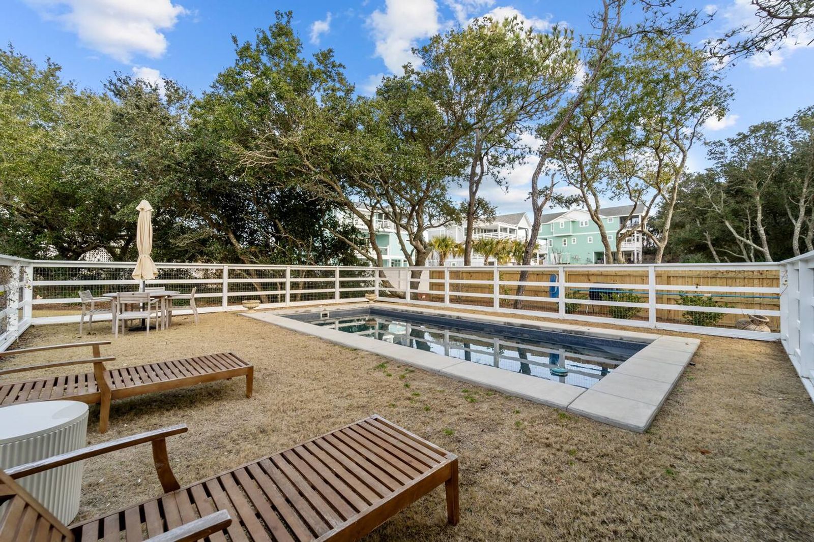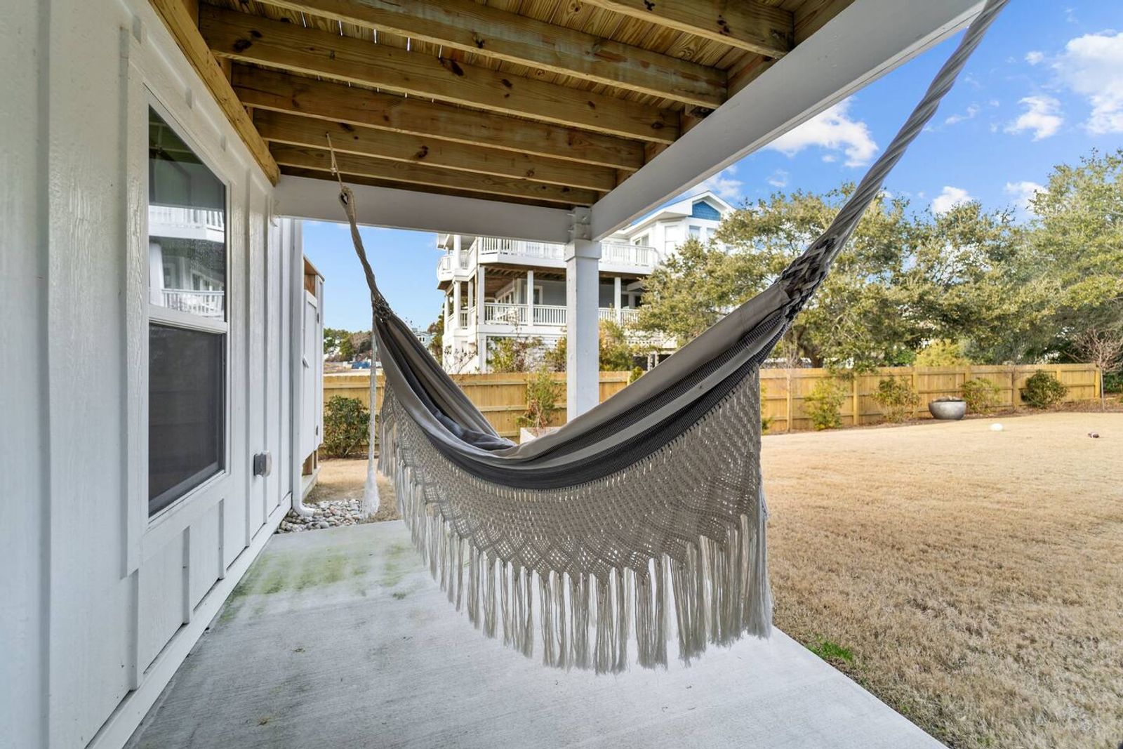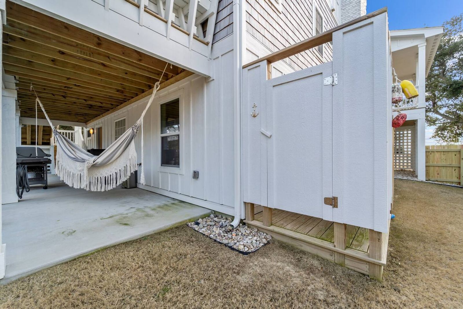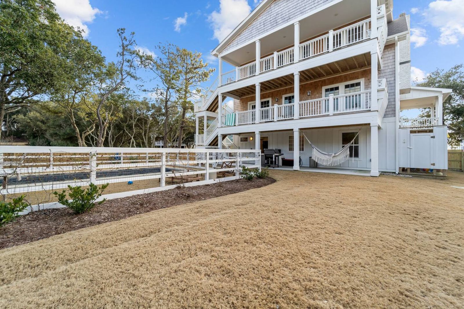 Step outside and enjoy the secluded backyard, shaded by classic Outer Banks Live Oak trees—a true nod to the natural beauty of the OBX. When you're not at the beach, cool off in the pool or rinse off in the outdoor shower after a day of sun and sand. The pool and backyard are common areas and may be shared if we are home.