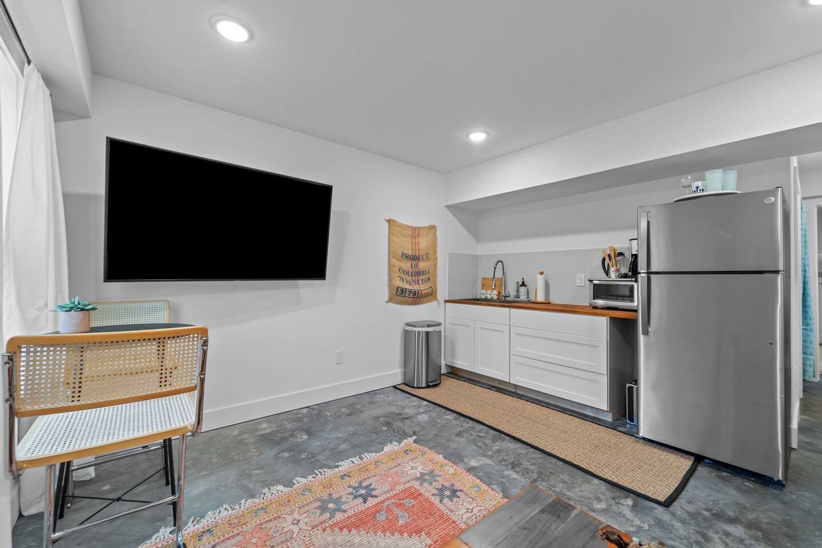 ✔ A spacious living area with a kitchenette (coffee maker, mini oven/microwave, and electric stovetop) for quick meals and snacks.