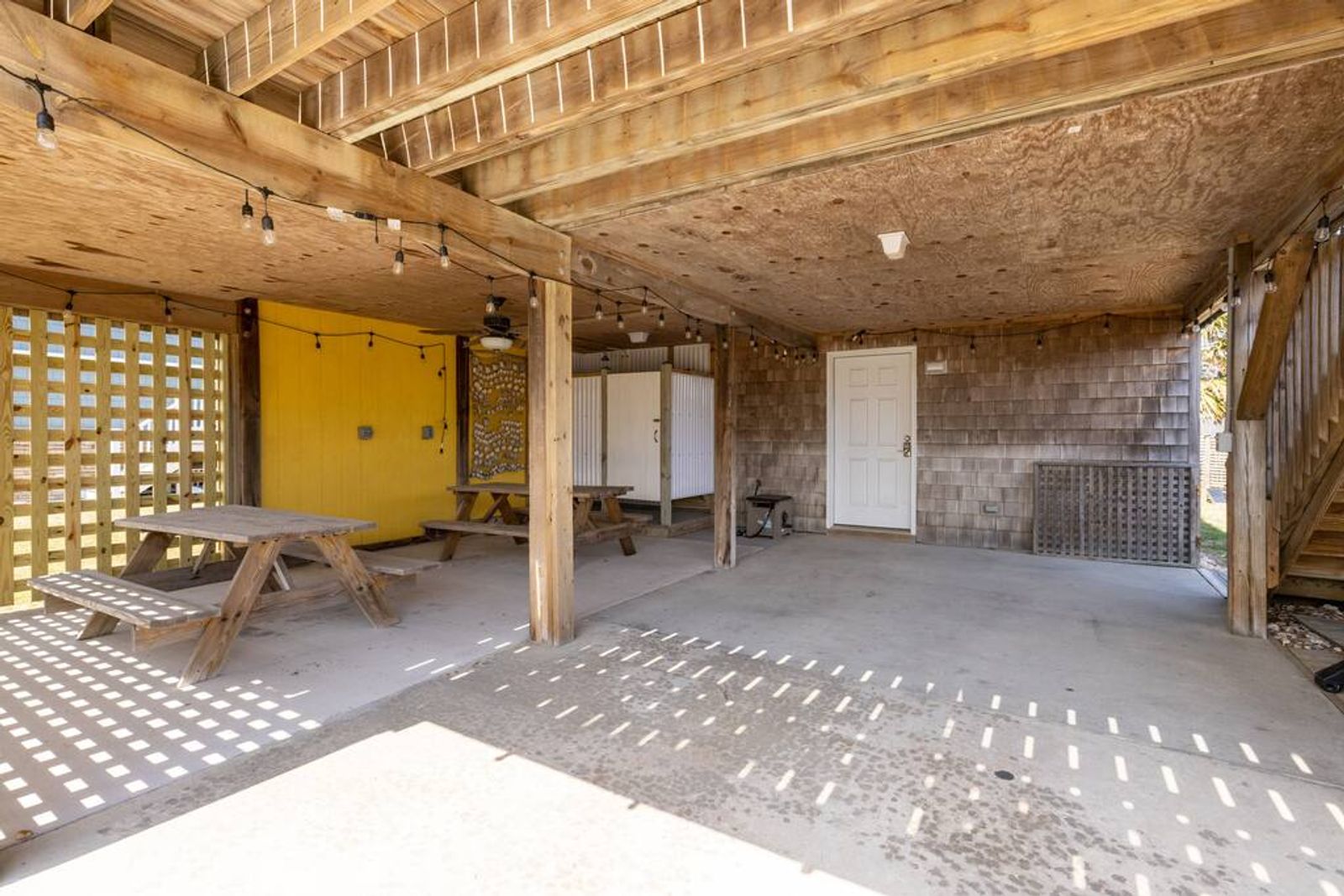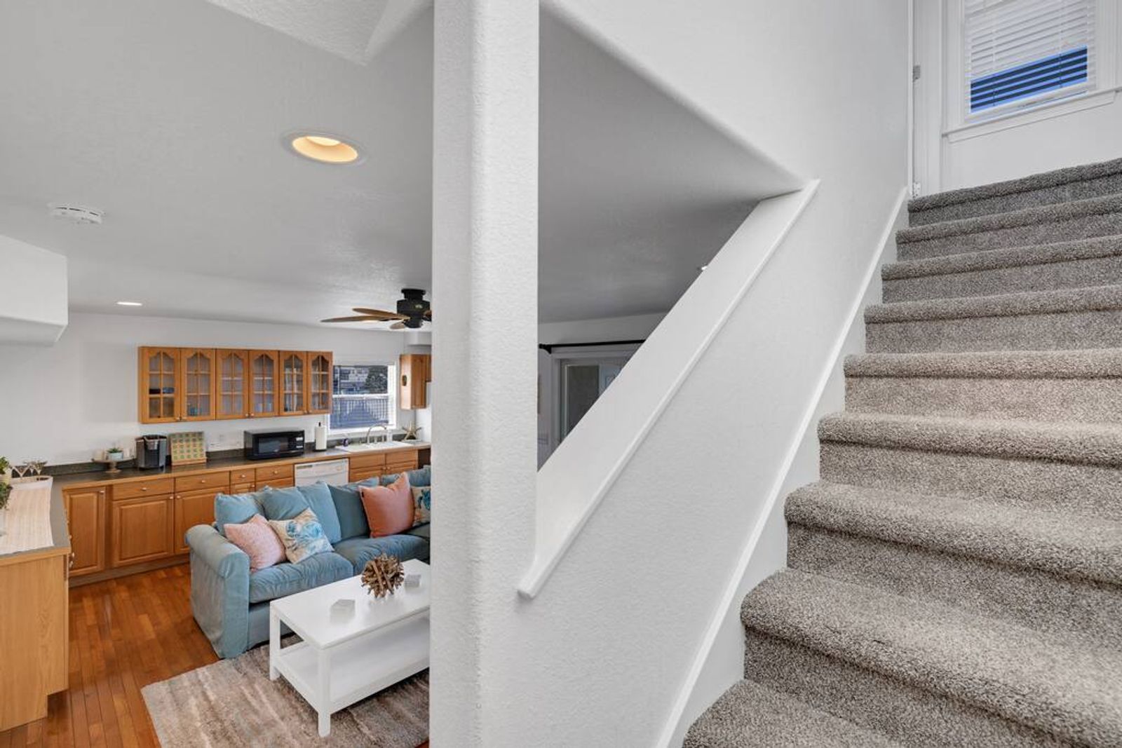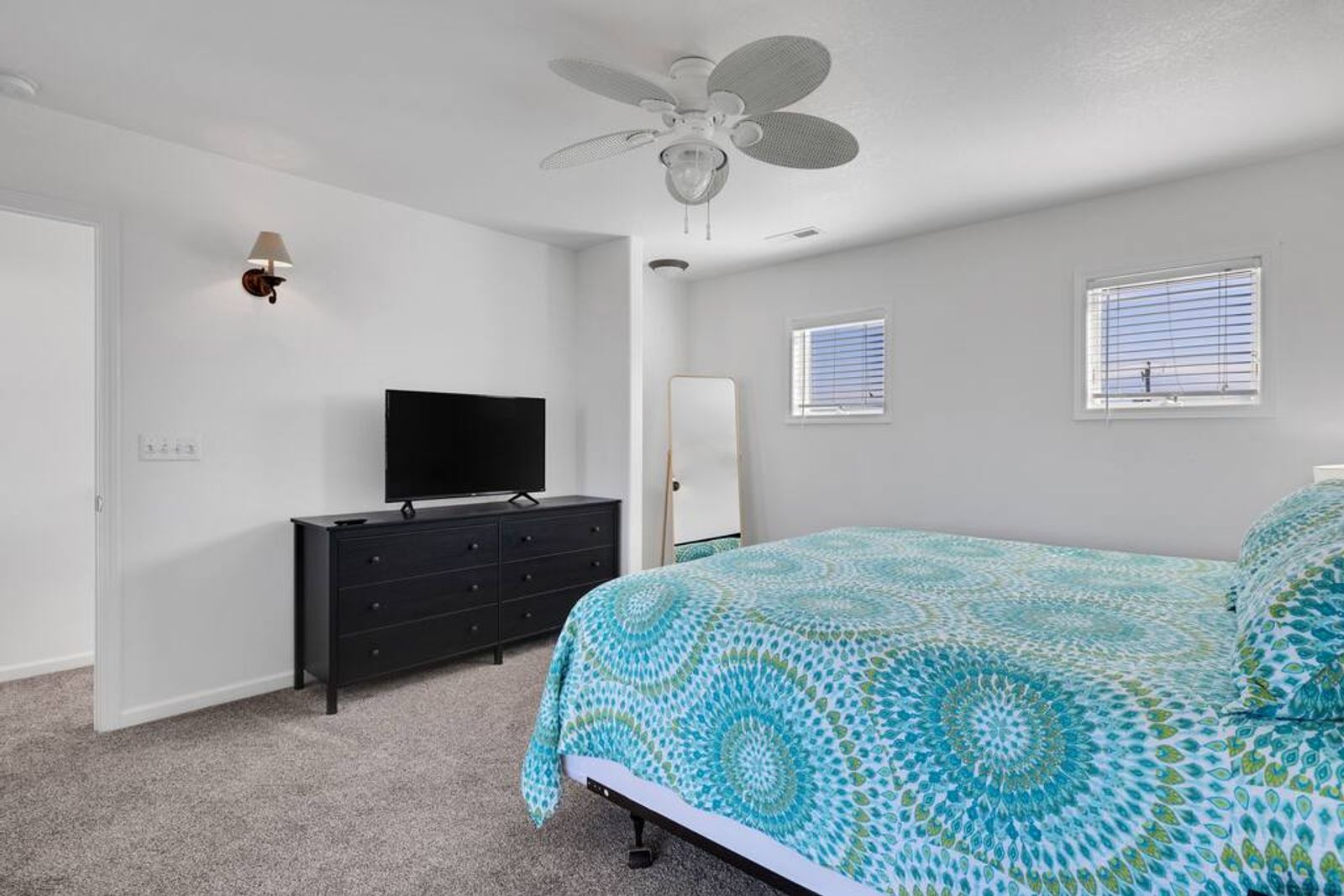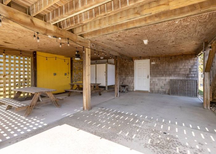 Our home is perfect for two families and has a comfortable open floor plan to accommodate. On the main level we have the living room with a large sectional, dining room with seating for 10, kitchen with bar seating for 3, full hall bath, bunk room with pyramid bunk (twin over full), another pyramid bunk room, queen master bedroom, large den with additional kitchen area and extra refrigerator, half bath and covered deck. Upstairs is a private King master with covered deck. Our laundry, pool area and outdoor shower are on the lower level. We also have a small side yard with a fence for your pup!