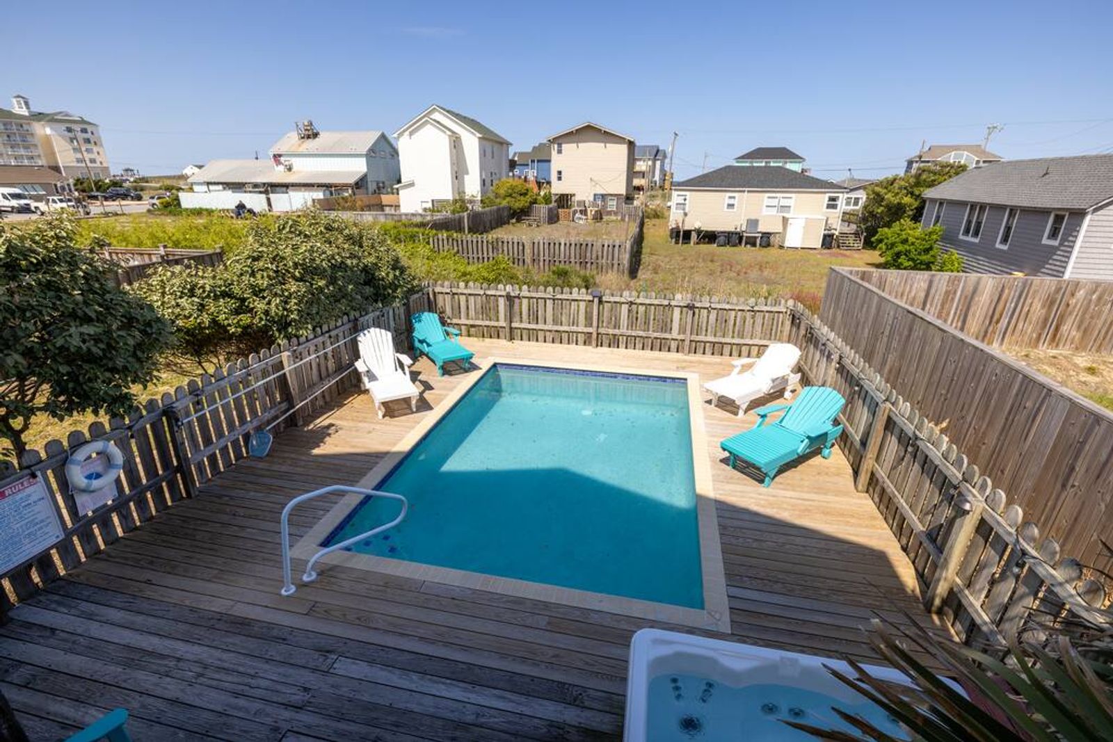 Amazing location! Walk to local restaurants and attractions while being one block from the beach, in the heart of Kitty Hawk. Pet friendly (fee required), ocean views, private pool, hot tub and all you need for an incredible beach vacation.