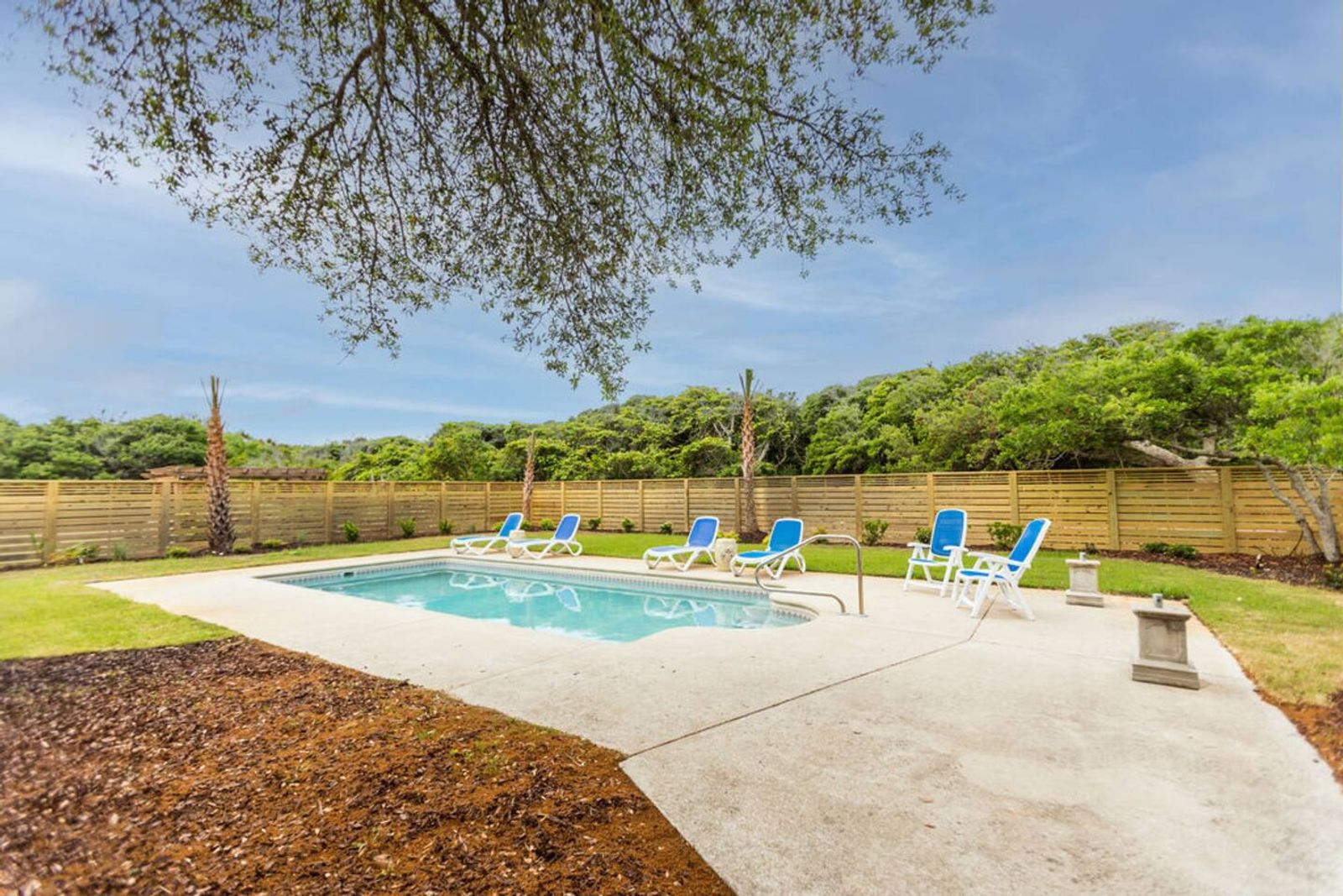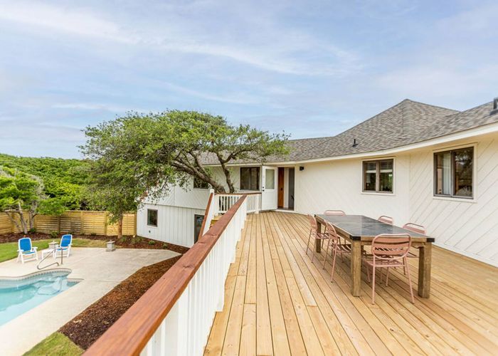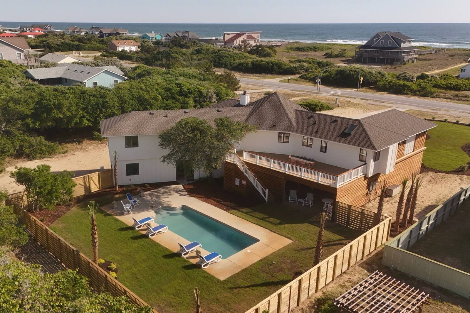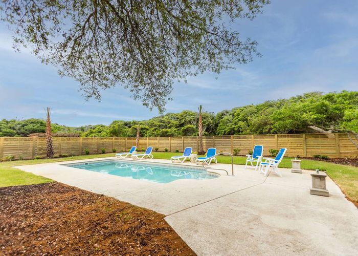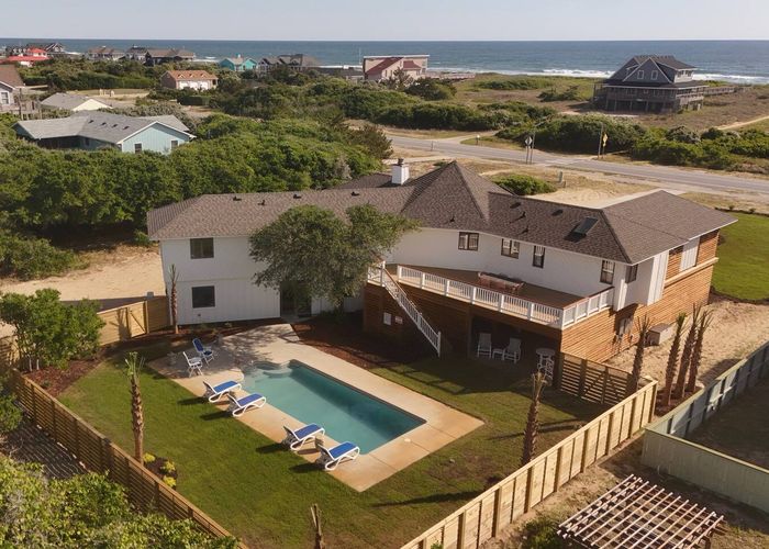 After a quick walk to the beach, rinse off in the outdoor shower, then unwind by the private pool in your spacious backyard oasis.