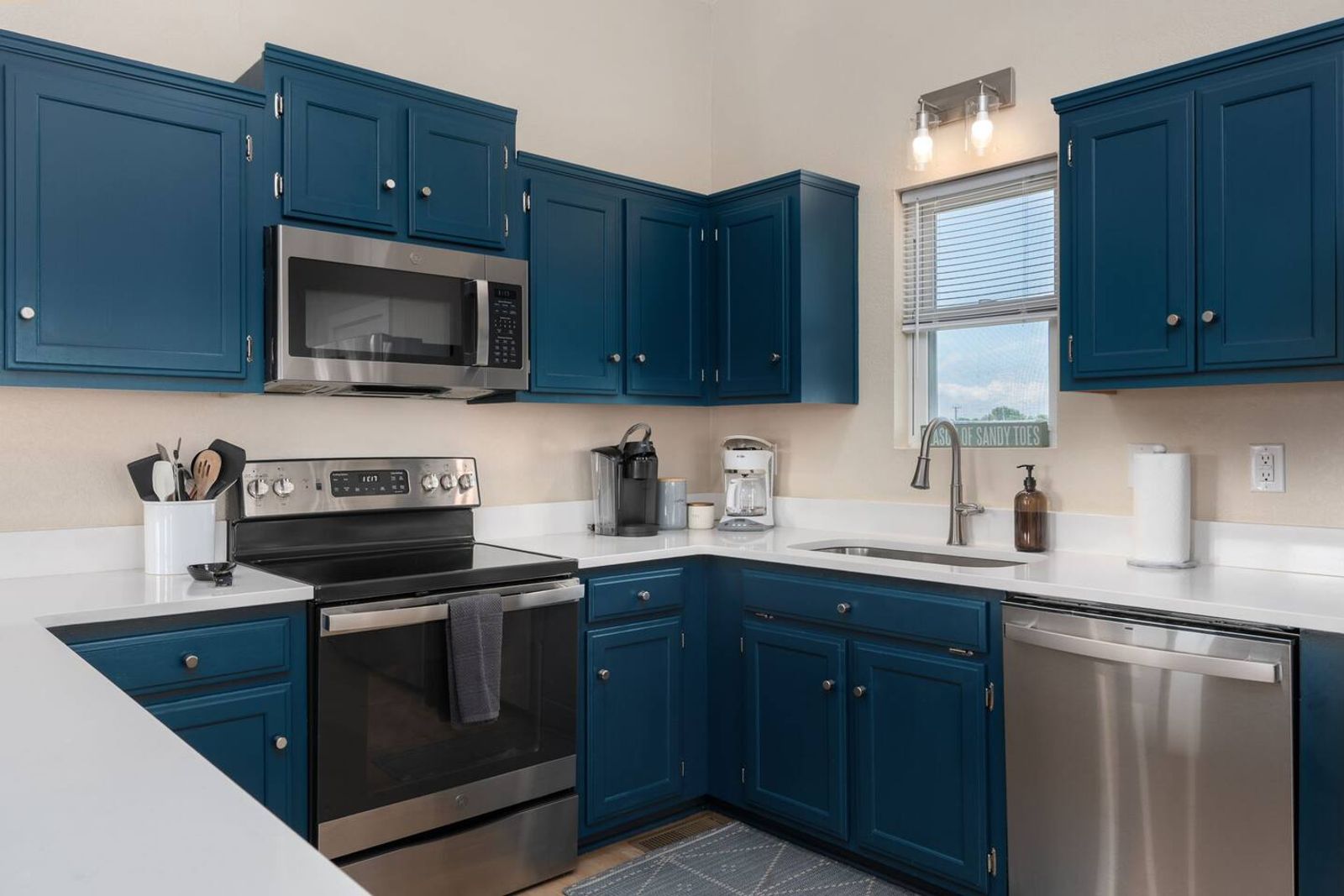 Enjoyed some stunning sunset views out the kitchen windows. Kitchenware is fully stocked, not bare bones like some.