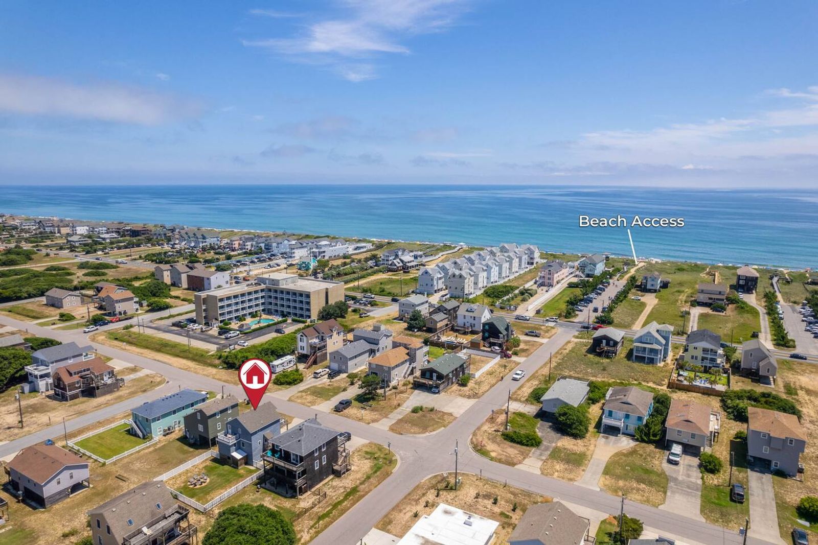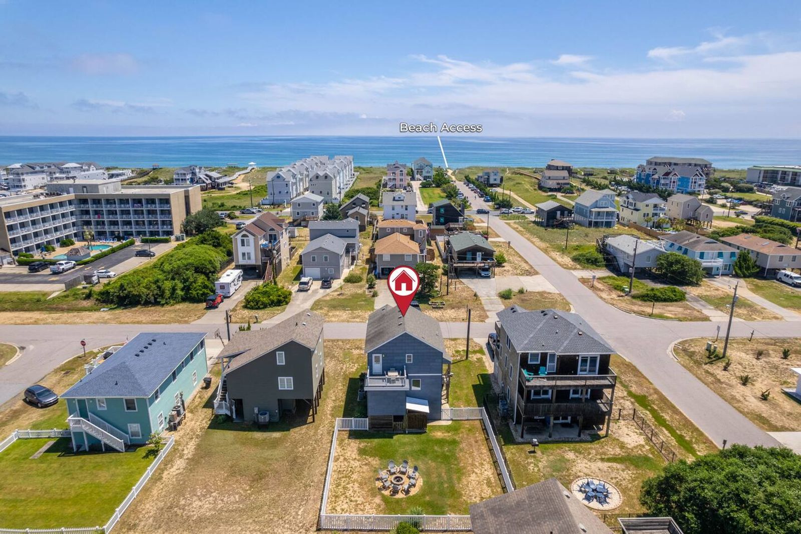 (Careful: Other beach houses might also technically be one block back from the beach, but then you might have to walk 1/2 mile up or down find public beach access.)