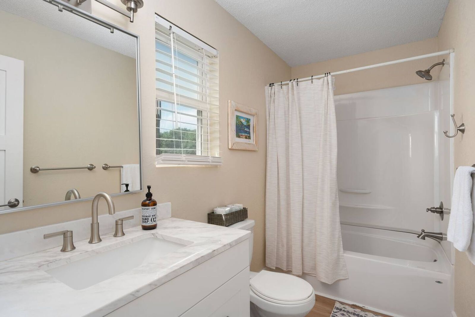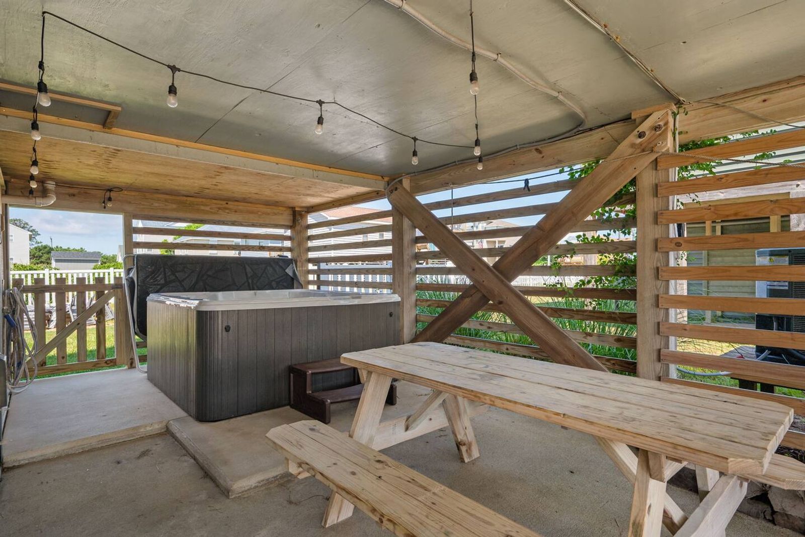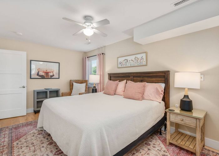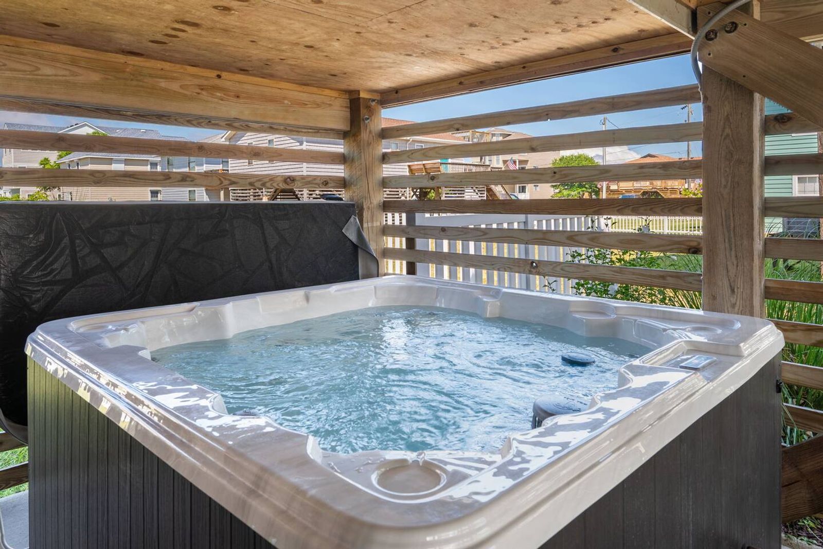 Beds are large, comfy, and master bathroom is extra spacious! Hot tub is nicely tucked away for some privacy. Fully enclosed fenced-in backyard.