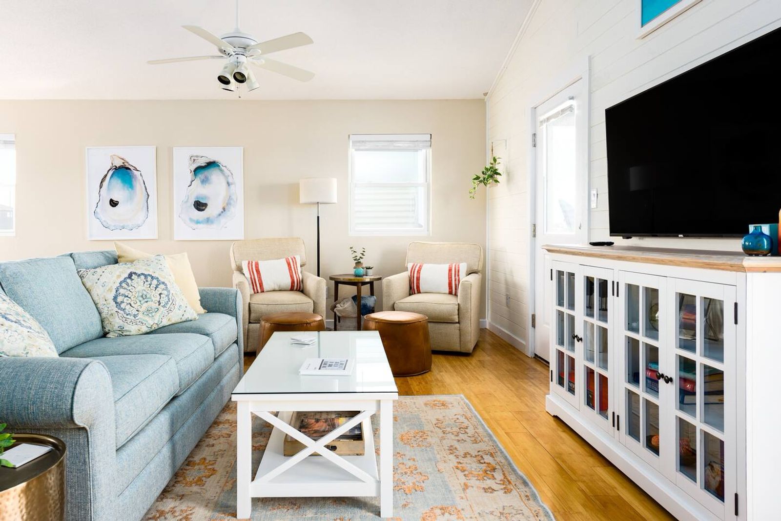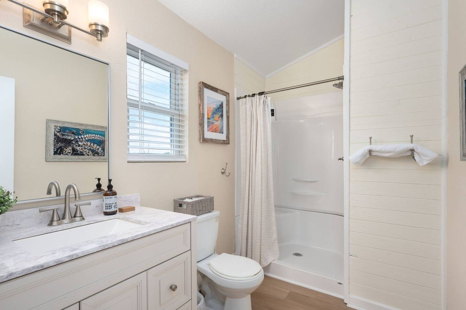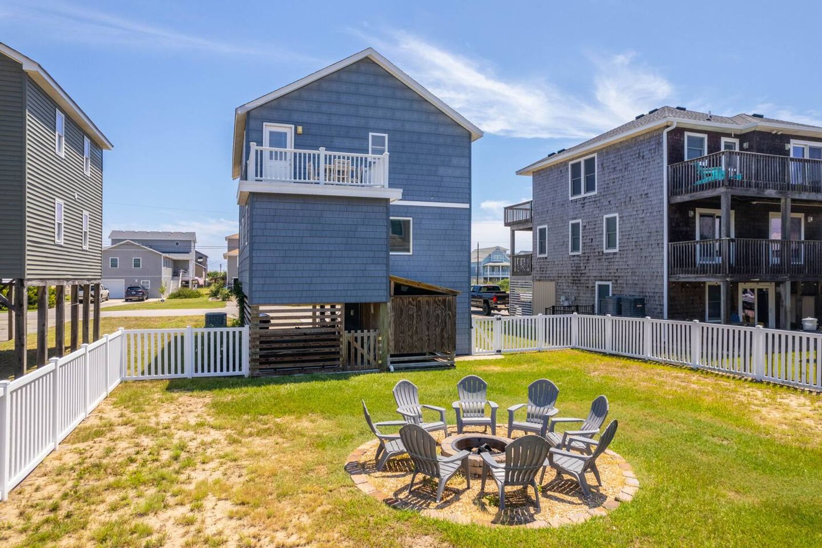 After a day at the beach, rinse off in the outdoor shower, unwind in the hot tub, or gather around the backyard firepit for s’mores and stargazing. Extra touches like a beach wagon, bikes, and chairs make your stay effortless and convenient—no need to rent the essentials.